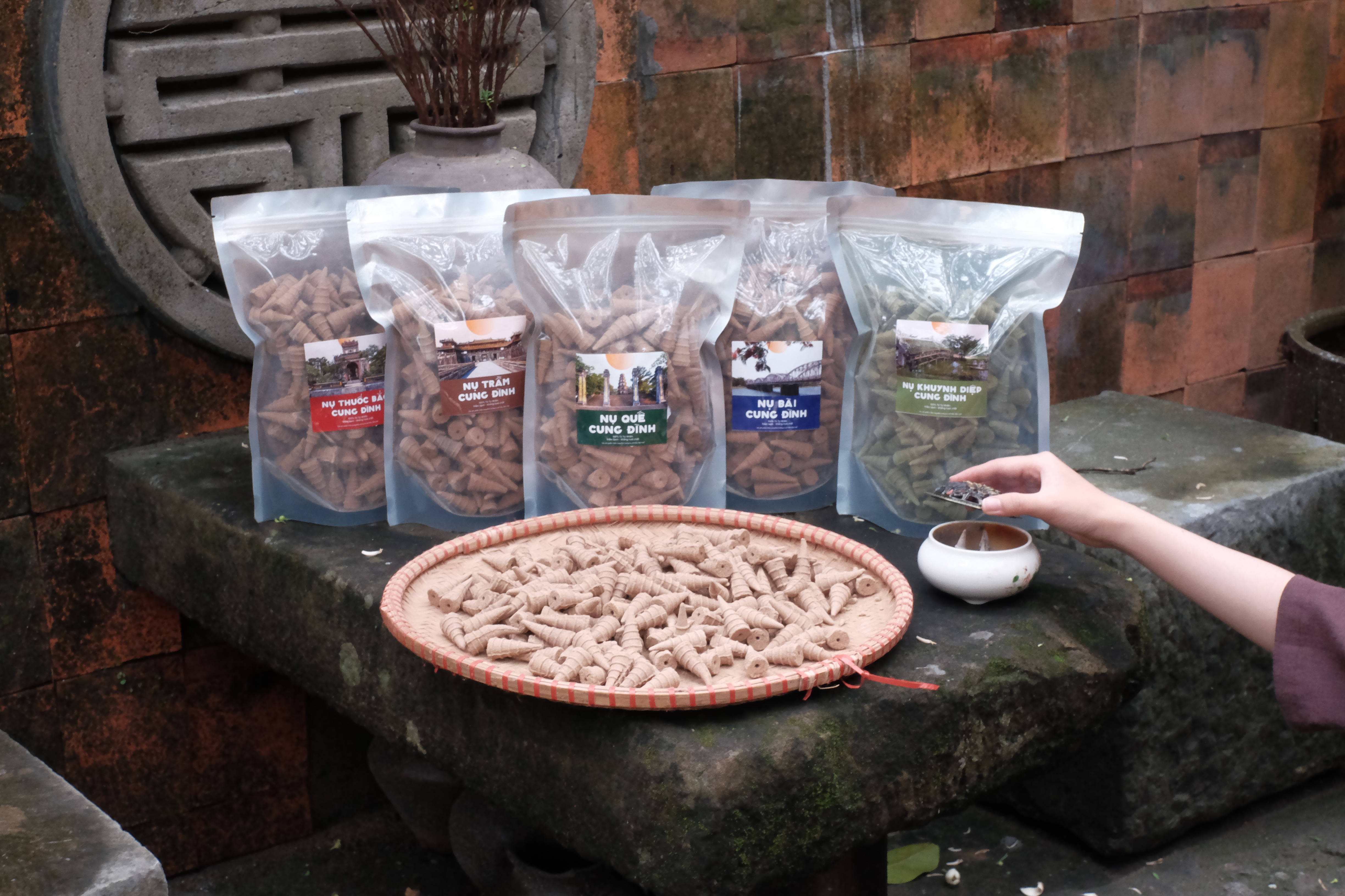 Đặt nhang nụ lên khay xông chuyên dụng bằng kim loại, gốm sứ, vỏ sò hay các vật liệu chống cháy khác.