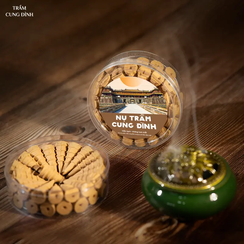 Nụ Trầm Hương Cung Đình được chế tác từ 100% bột trầm hương tự nhiên, tích trầm từ 10 năm trở lên, mang đến mùi hương nhẹ mà sâu, ấm và thuần khiết. Là sản phẩm hoàn toàn từ tự nhiên không hương liệu hay phẩm màu nhân tạo, đảm bảo an toàn tuyệt đối cho sức khỏe người dùng. Từng nụ trầm được nghệ nhân làng hương Thủy Xuân, Huế nhào nặn thủ công, phơi nắng tự nhiên để giữ trọn hương trầm mộc mạc, ấm áp và tinh tế.